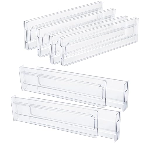 Bosiyrggrl Lot de 8 SéParateurs de Tiroir, RéGlables de 3,2 Pouces de Haut, Extensibles de 11 à 20,6 Pouces, Organiseur de Tiroir de Cuisine, Plastique Transparent