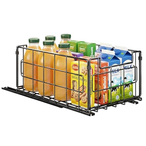 Eclove Tiroir de Cuisine Coulissant 16 * 21,5 * 33,5 cm, Organiseur de Tiroir de Cuisine, Tiroir En Métal, Aucun Perçage Ni Clouage Requis, Convient aux Placards, Garde-Manger, Salles de Bains (Noir)