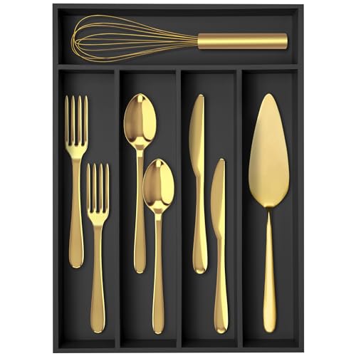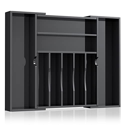 NIUBEE Organiseur de tiroir de cuisine en acrylique pour couverts et ustensiles, organiseur extensible pour argenterie et plateau à couverts pour cuisine, bureau, salle de bain, noir, 53,3 cm