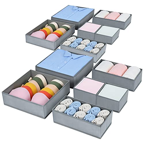 Homsorout Lot de 12 organiseurs de placard, tiroirs, boîte de rangement pliable en tissu, organisateur de sous-vêtements, organisateur pour vêtements, chaussettes, gris clair
