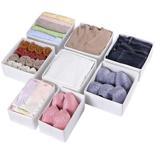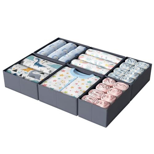 Homsorout Lot de 8 organiseurs de tiroirs, de penderie, pliable, en tissu, système de rangement, pour pantalons, vêtements, chaussettes, gris foncé