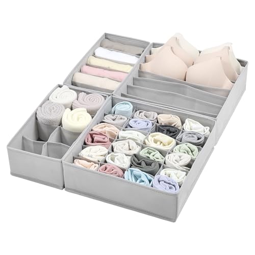 ZCHI Lot de 4 organiseurs de chaussettes, de tiroirs, à 20 compartiments, pliable, système de rangement pour la maison, le dortoir, pour écharpes, cravates, chaussettes, gris