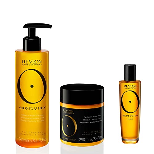 REVLON PROFESSIONAL OROFLUIDO Elixir Original à l'Huile d'Argan, Shampoing Lumière et Masque pour Cheveux - 30 ml, 240 ml, 250 ml