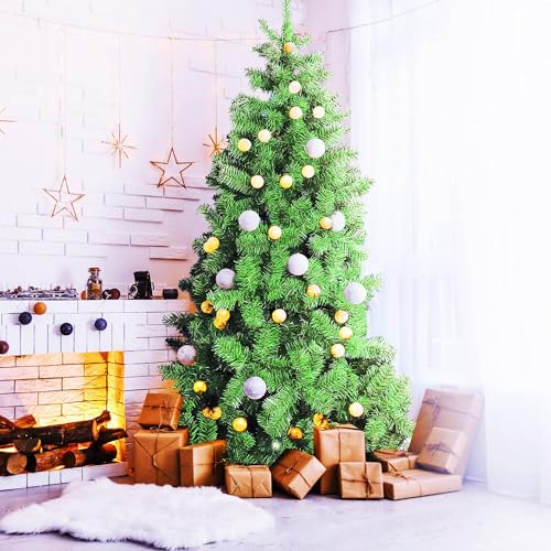 Toilinux Sapin de Noël Artificiel enneigé Oslo - 850 Branches épaisses H. 210 cm Blanc et Vert