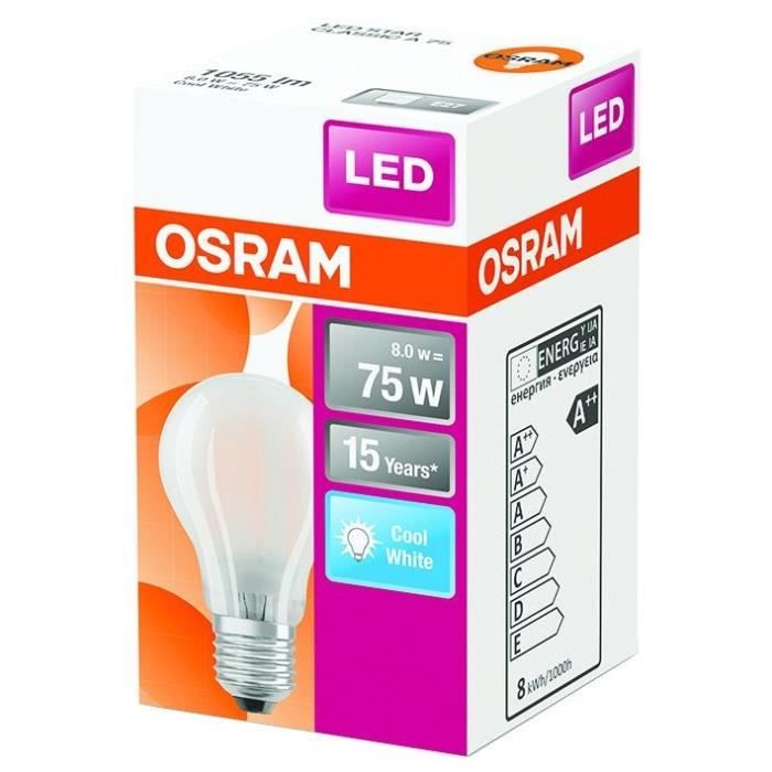 OSRAM - Ampoule LED standard verre dépoli 8W75 E27 blanc froid boite de 1