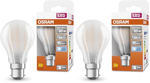 Osram LED Star ampoule LED à filament dépoli, culot B22d, blanc froid (4000K), forme ampoule, kit de remplacement pour ampoules classiques 60W, 1-pack (Lot de 2)