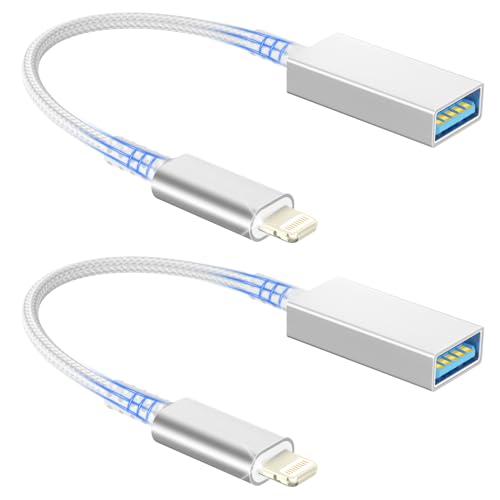 Adaptateur USB vers Lightning (Lot de 2), Câble Lightning vers USB Adaptateur OTG Pour iPhone 14 13 12 11 Pro Max/Plus/XR/X/8/iPad Pro, Compatible avec Clés USB ,Claviers MIDI, Appareils Photo, Souris