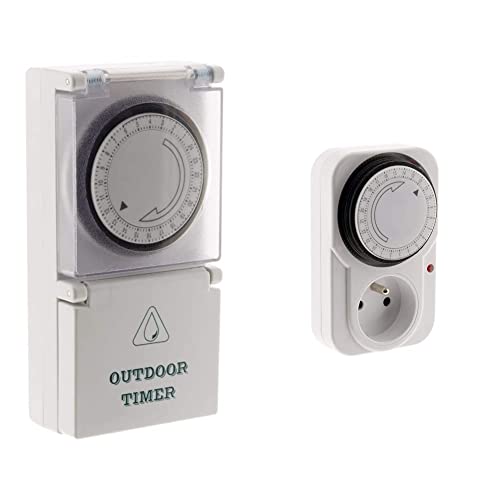Vinabo Programmateur Prise Electrique et Digitale, Prise Programmable à Cycle Alternatif & Otio Programmateur journalier mécanique Inter. Voyant 3680 W