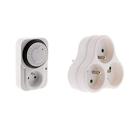 Otio Programmateur journalier mécanique Inter. Voyant 3680 W & Zenitech Triplite 3X 16A Triangulaire Blanc
