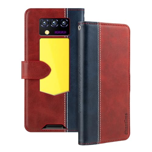 Shantime Étui en Cuir à Rabat Compatible avec Oukitel WP100 Titan Case avec Porte-Cartes Blocage RFID Support Magnétique Design Mince Couverture(Rouge)