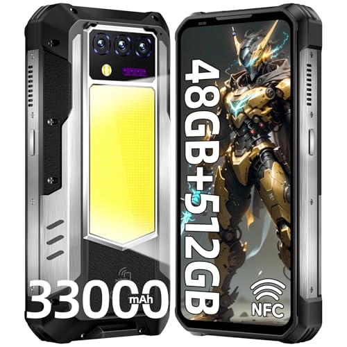 OUKITEL WP100 Titan Téléphone portable Incassable 5G, 33000mAh Batterie, Projecteur intégré 100-lumens, 48GO +512GO, 6.8" FHD+/120Hz Smartphone Incassable, 200MP+32MP, Camping Éclairage 1200LM/NFC/GPS