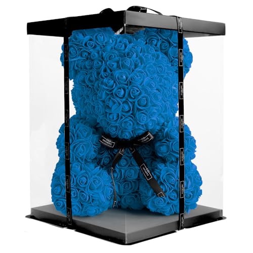 Infinity Ours de Roses 40 cm avec boîte et Plus de 600 Roses éternelles collées à la Main parfumées - Cadeau pour Femme, pour Un Anniversaire ou Un Anniversaire de Mariage (Ours en Peluche Bleu de 40