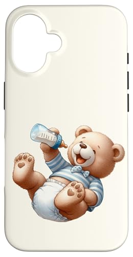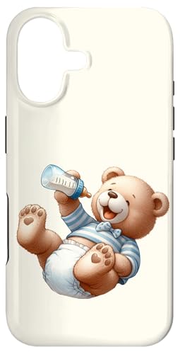 Brown Bear Silly Baby Boy Ours en Peluche Bleu pour fête prénatale Coque pour iPhone 16