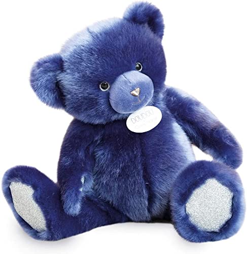 DOUDOU ET COMPAGNIE - Ours en Peluche - 37cm - Bleu Nuit et Paillettes - Collection Ours La Peluche - Tout Doux pour les Câlins - Idée Cadeau pour Enfants dès 2 ans - Garantie Doudou Perdu - DC3566