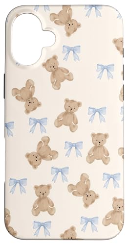 Coquette Ours en Peluche avec nœud Bleu Coque pour iPhone 16 Plus
