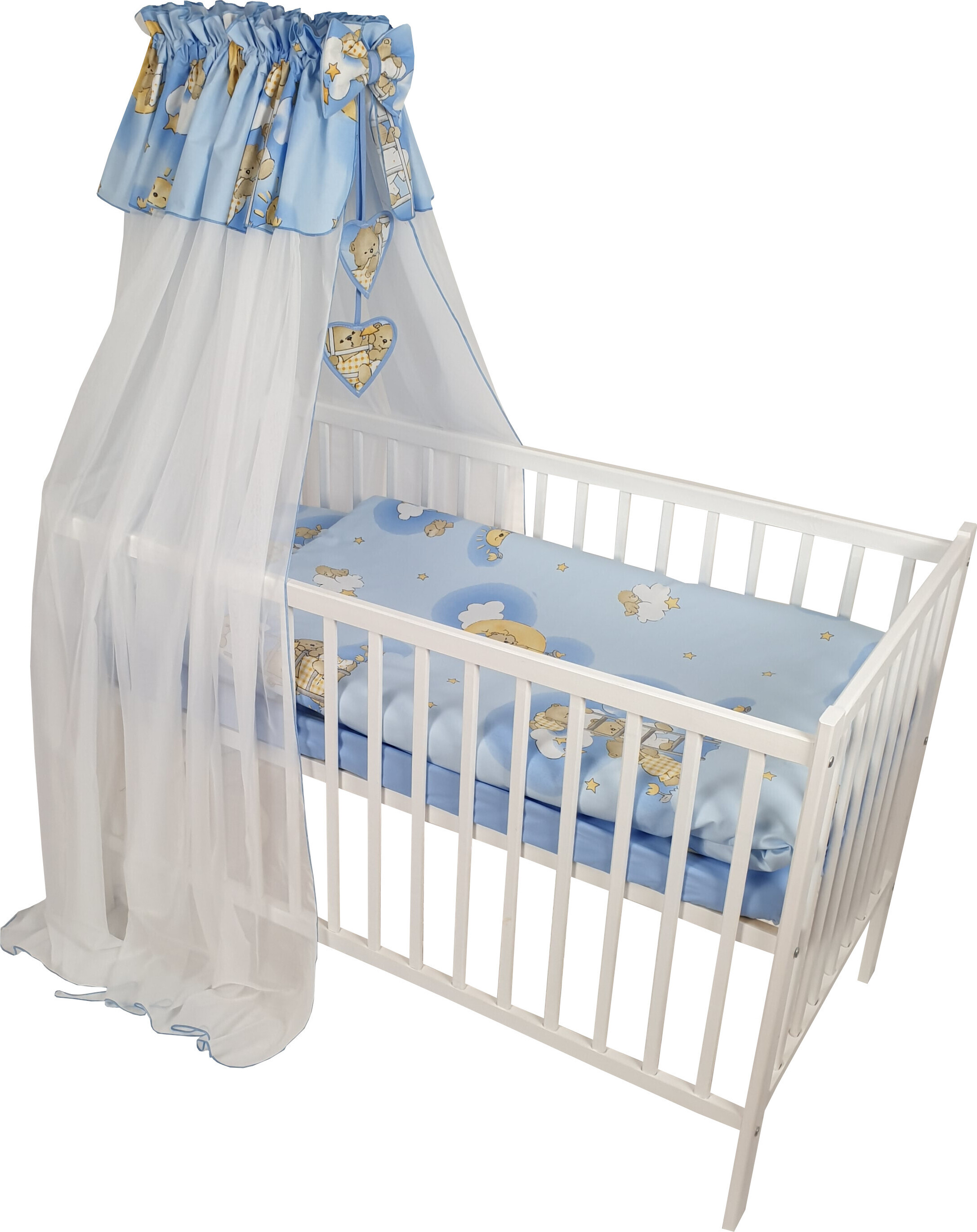 HAPPY 7 pièces lit bébé lit et literie set complet réglable en hauteur en bois massif pour nouveau-nés et jeunes enfants (bleu ours en peluche sur échelle)