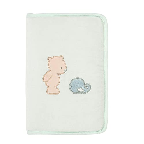 Nattou Protège Carnet en Peluche en Coton et Polyester, Couverture pour le Carnet de Santé, Ours et baleine, Avec fermeture éclair, Env. 25 x 16,5 cm, Roméo, Jules et Sally, Bleu clair