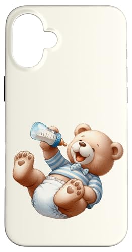 Brown Bear Silly Baby Boy Ours en Peluche Bleu pour fête prénatale Coque pour iPhone 16 Plus