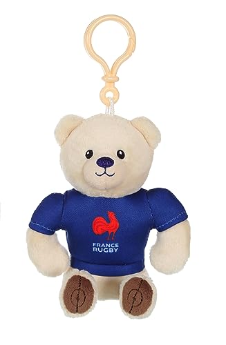 Gipsy Toys - Ours Porte-clés Fédération Française de Rugby (FFR) – Peluche Officielle sous Licence - 10 cm Assis – Beige Bleu Marine