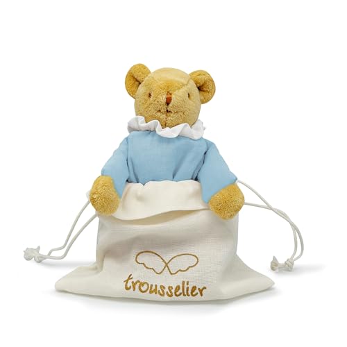 Trousselier - Doudou Bebe Ours Nid d'ange avec Hochet - Ours en Peluche Coton Bio Bleu Ciel - Cadeau Naissance Nouveau Né Garçon Fille - Nounours 20 cm - Doudou Naissance Bébé Mixte
