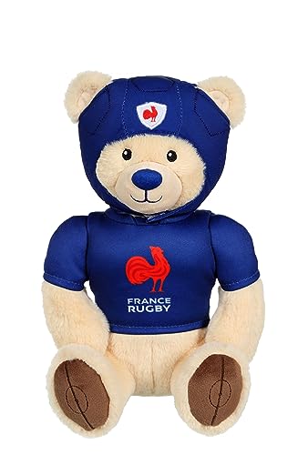 Gipsy Toys - Peluche Ours Fédération Française de Rugby (FFR) – Peluche Officielle sous Licence - 24 cm Assis – Beige Bleu Marine