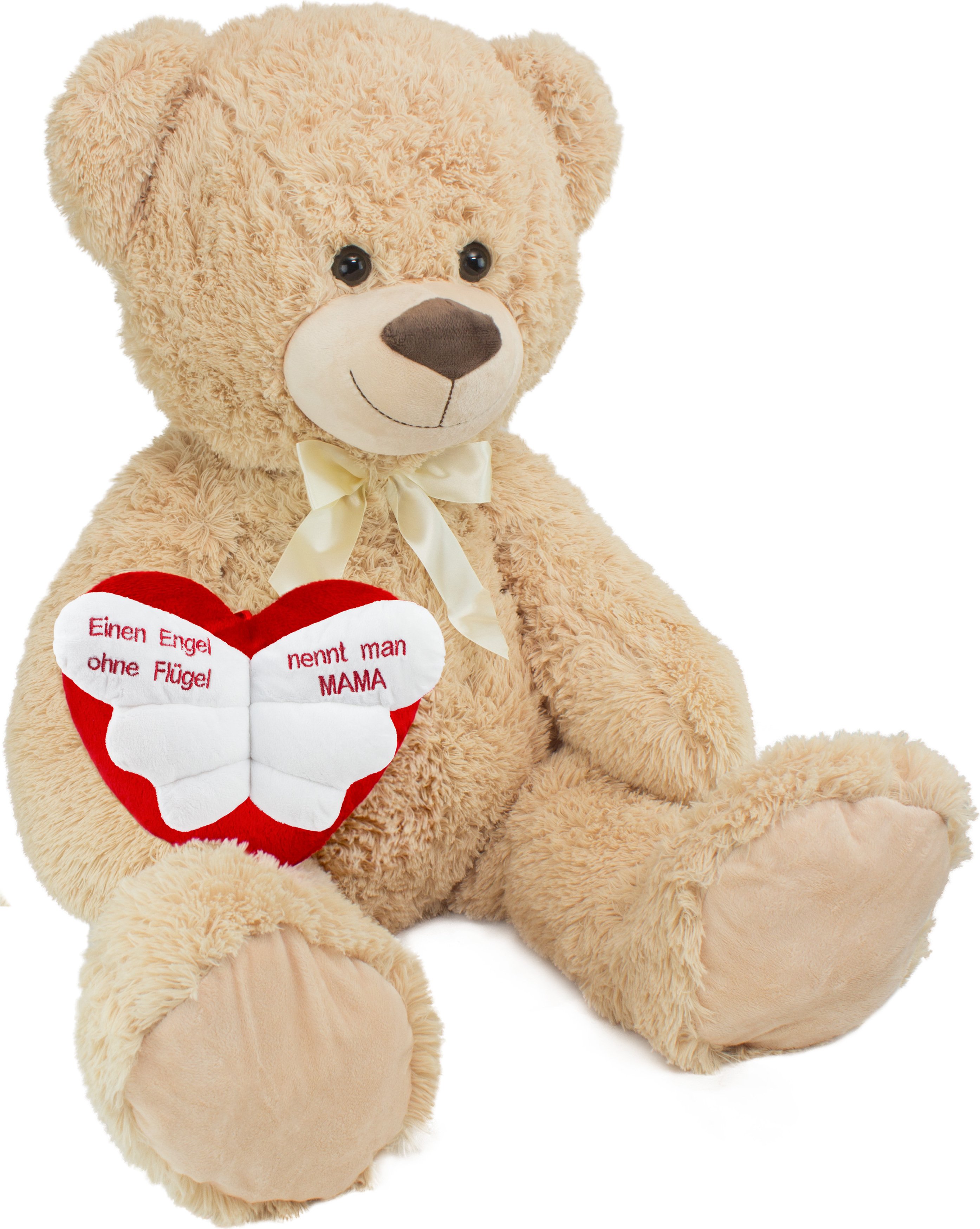BRUBAKER XXL Ours en peluche 100 cm grand Beige avec 'On appelle maman un ange sans ailes' Coeur Peluche