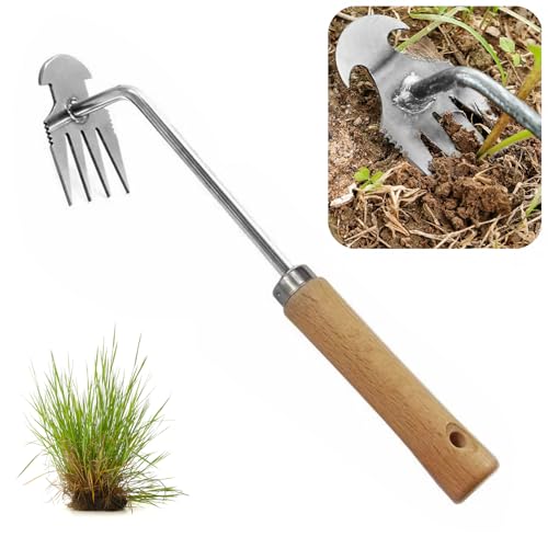 Désherbeur Manuel de Jardin – Râteau de Jardinage Manuel Multi-Dents – Outil Multifonction pour désherber l' à la Main pour Cour, Jardin, pelouse