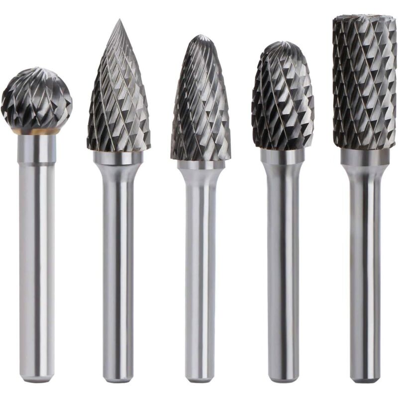 Kit de 5 pièces Fraises Rotatives en Carbure de Tungstène Double Coupe Tige 6mm Tête 10mm Outil Dremel Perceuse Ponceuse Electrique