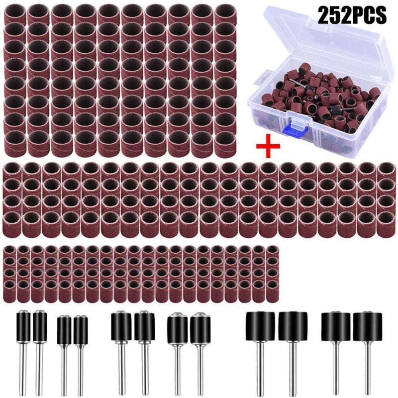 Ensemble de 252 manchons de ponçage avec boîte gratuite comprenant 240 bandes de ponçage et 12 rouleaux de ponçage pour outil rotatif Dremel