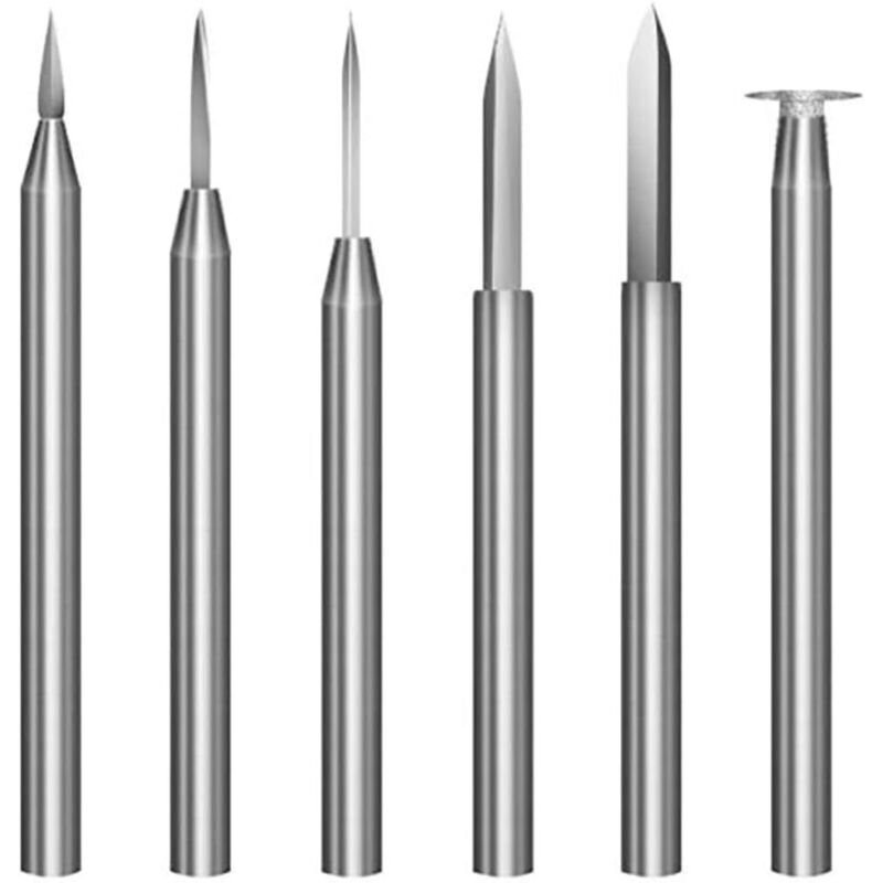 Lot de 6 forets de sculpture sur bois pour outil rotatif Dremel - Accessoires de perceuse de gravure - Outil de meulage du bois avec tige de 3 mm