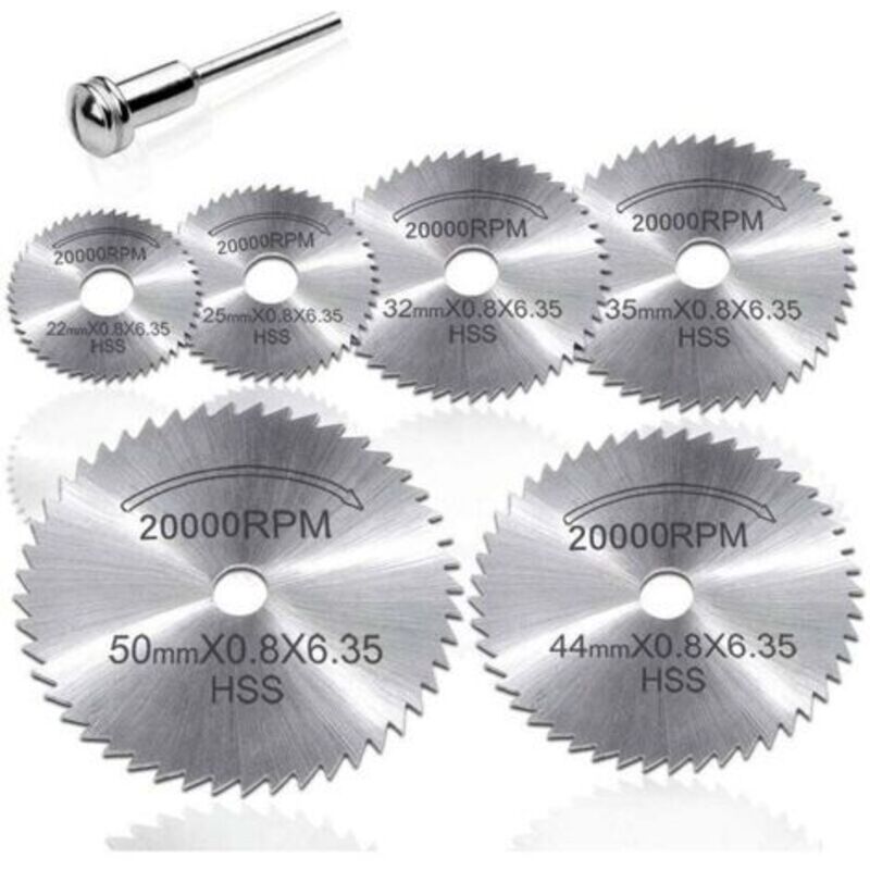 KZQ - Nouveau 7pc hss lames de scie outil rotatif, Circulaire en bois de coupe lame de scie Disques pour Dremel Outil rotatif Mandrin avec tige