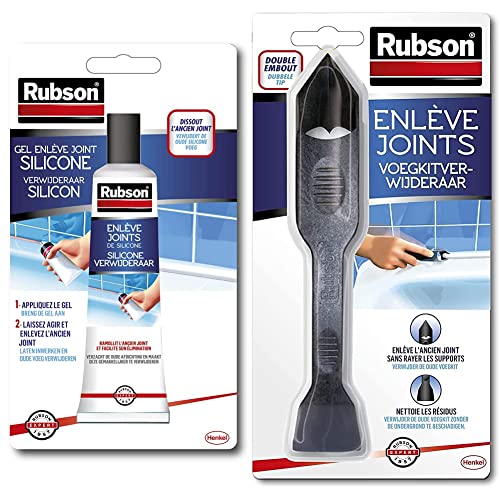 Lot de 2 produits Rubson - Enlève Joints Silicones, spécialement adapté pour retirer les joints de silicone, tube de 80 ml & Enlève Joint à double embout, Outil pour enlever facilement les joints en silicone