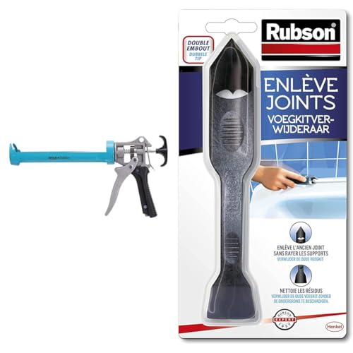 Amazon Basics Pistolet à calfeutrer robuste pour mastic - 310 ml - Rapport de poussée 12:1 & Rubson | Enlève Joints à double embout – Outil pour enlever l'ancien joint sans rayer les supports