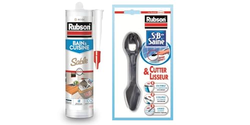 Rubson Mastic Bain & Cuisine Couleur Sable, Joint silicone multi-matériaux renforcé en antifongiques, 280 ml & Salle de Bain Saine, outil 2 en 1 pour ouvrir toutes les cartouches de mastic