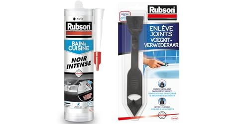 Lot de 2 produits Rubson - Mastic Bain & Cuisine Couleur Noir, 280 ml & Rubson Enlève Joint à double embout, Outil pour enlever facilement les joints en silicone