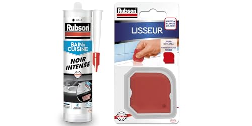 Rubson Mastic Bain & Cuisine Couleur Noir Intense, Joint silicone multi-matériaux renforcé en antifongiques, 280 ml & Lisseur, outil pour lisser tous les types de joints