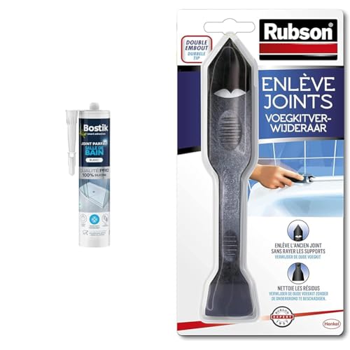 Bostik Mastic d’Étanchéité Joint Parfait Salle de Bain – Jointe Tous Matériaux & Rubson | Enlève Joints à double embout – Outil pour enlever l'ancien joint sans rayer les supports
