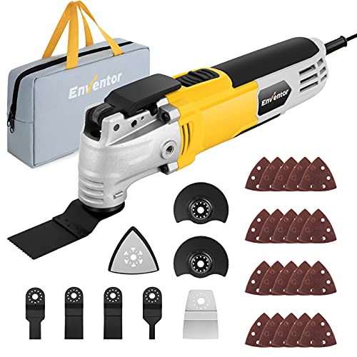 ENVENTOR Outil Multifonction Oscillant, 300W Outils Oscillants, 6 Vitesses Variables 15000-22000RPM, Angle Oscillant 3 °,28 Accessoires, Multi Outil Oscillant pour Couper, Poncer, Gratter, Scier