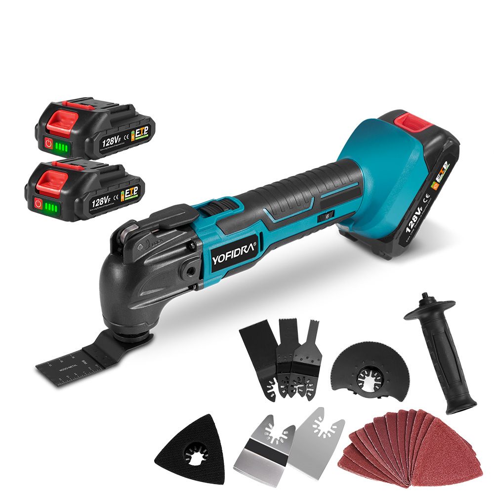 Outil Multifonction Oscillant , 6 Vitesses Réglables, avec 22 Accessoires, Angle d'Oscillation de 4°Avec deux batteries 128vf