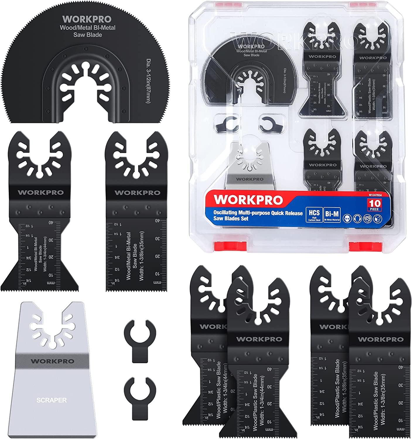 Lame de Scie Oscillante WORKPRO, 10 Pièces Coffret des Accessoires d'Outil Multifonction Oscillant, Lame de Scie Universelle pour Bois, Clous, Métal, Plastique, etc