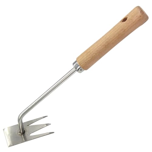 DEARMAMY Outil Râteau Désherbage Multifonction en Acier Inoxydable Manche en Bois, Outil de Désherbage pour Enlever Mauvaises Herbes et Mousse, Adapté au Jardinage Extérieur