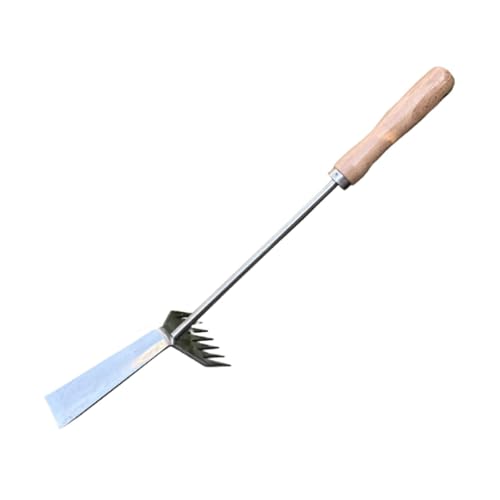 ifundom Outil Désherbage Manuel Multifonction en Acier Inoxydable Manche en Bois et Tête Dentelée, Outil de Jardinage pour Enlever Mauvaises Herbes et Désherber Semis