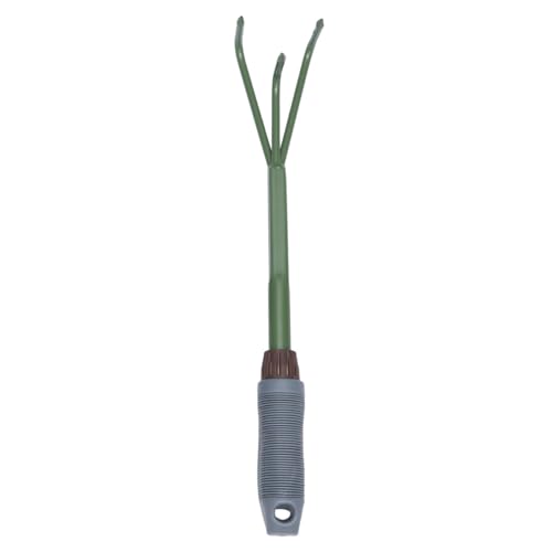 PHENOFICE Râteau à Trois Dents en Acier pour Jardinage Manuel, Outil Portable pour Enlever Mauvaises Herbes et Niveler Sol Meuble, Adapté pour Pelouse et Espaces Verts