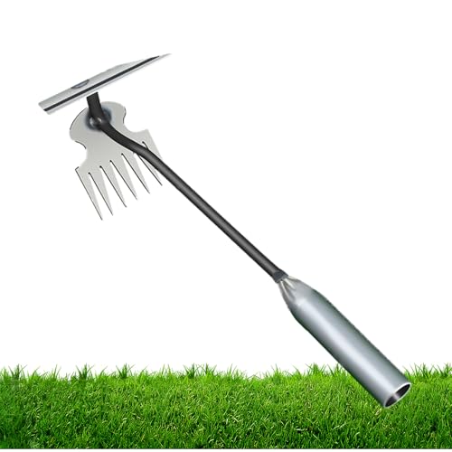 Duroecsain Râteau désherbant résistant - outil pour enlever les mauvaises herbes, extracteur manuel multifonction pour niveler et semer, outil de jardin portable désherbant