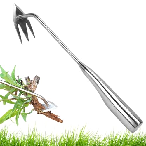 Wyhqgn Houe de Jardin Main Outil Manuel pour Enlever Mauvaises Herbes Acier Inoxydable Poignée Longue Structure Légère Adapté Entretien Balcon Potager Jardin, Grand