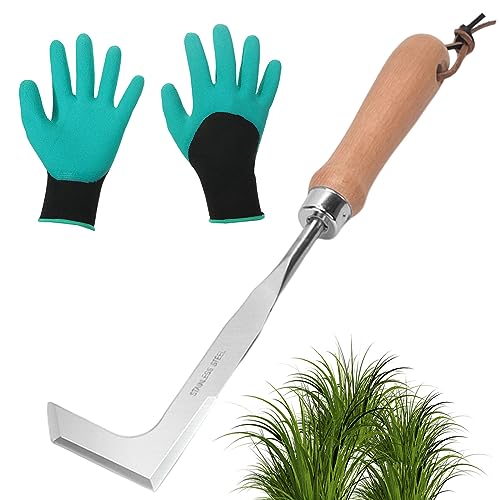 GANAZONO Outil de Désherbage Manuel en Acier Inoxydable Trempé, Forme en L, pour Jardin et Fissures, Désherbeur Pratique Anti-Mousse, Outil de Jardinage pour Enlever Mauvaises Herbes, 1