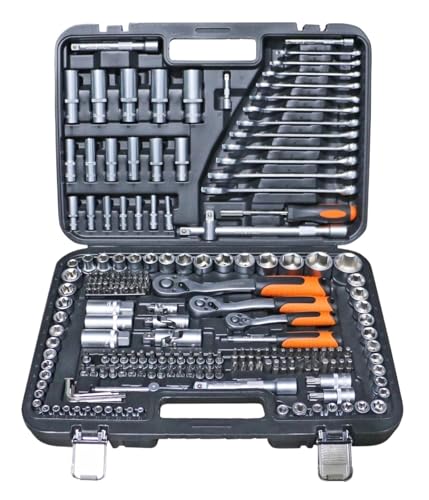 AMYSTY Outillage Mecanique Auto Jeu de Douilles 219 pièces 1/2'' 1/4'' 3/8'' Jeu de clés à cliquet à Douille Ensemble d'outils à Main Ensemble de réparation Automatique Boite A Outils