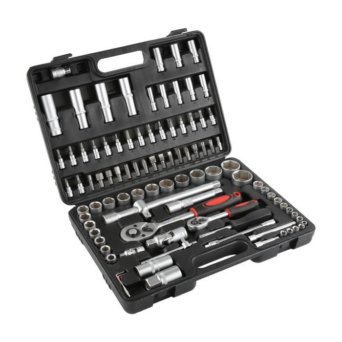 Coffret de Douilles Outillage Mécanique Professionnel pour Réparation Voiture Auto avec Boîte 92 Pièces *Laizere