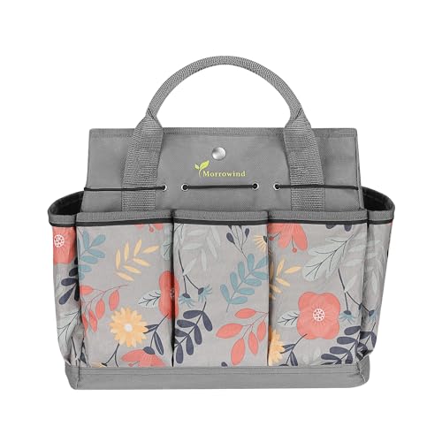 Sac à outils de jardin MORROWIND, Sac fourre-tout en tissu Oxford avec 8 poches extérieures pour le rangement des outils de jardinage sur pelouse, Rouge Floral