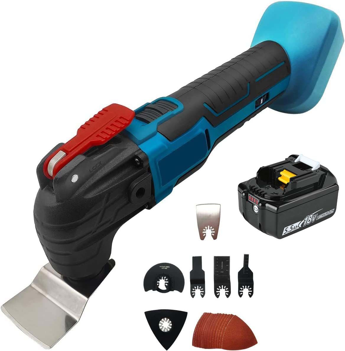 Outil multifonction oscillant à batterie angle d'oscillation avecpièces d'outils accessoires coupe, (batterie 1x5500mah (sans chargeur)) compatible avec les batteries Makita,